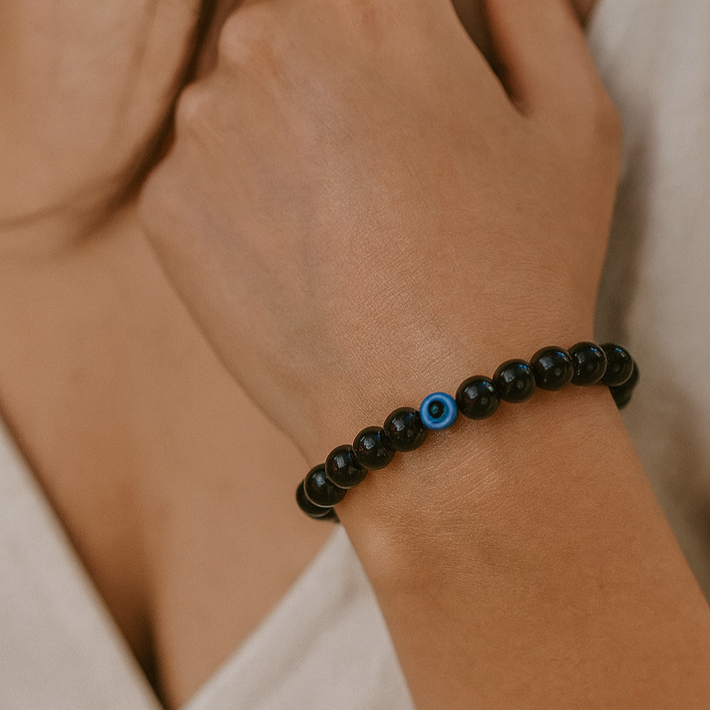 Discover the protective elegance of the JewelMaze Black Obsidian Beads Bracelet with Evil Eye. Crafted from genuine black obsidian, this bracelet offers natural grounding and shielding properties. The incorporated evil eye charm adds an extra layer of defense against negative energies. Perfect for everyday wear, it blends meaningful symbolism with sophisticated style to support both your well-being and fashion.
