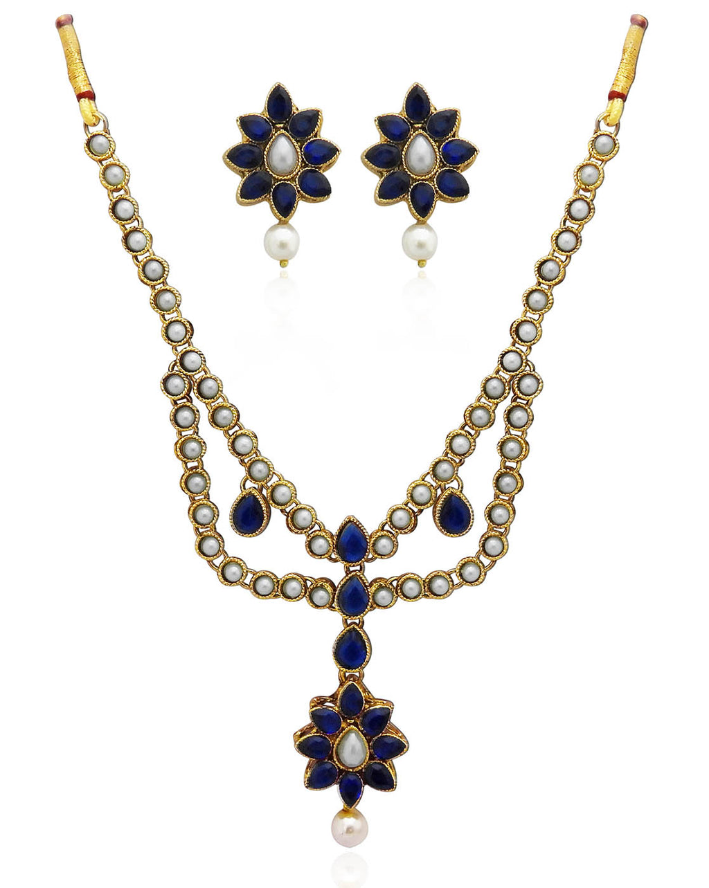 Very stylish & glossy necklace Set from JewelMaze womens love shiny jewellery. It is studded with Kundan stone. Add a charm into your look by wearing this beautiful kundan studded necklace set.