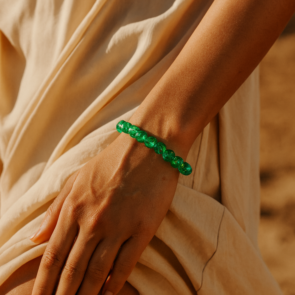 Enhance your collection with the JewelMaze Crystal Crackle Glass Beads Stretch Bracelet. Crafted from intricately designed crackle glass beads, this bracelet offers a unique blend of sparkle and texture. The stretch design ensures a comfortable fit for various wrist sizes, making it an elegant yet practical accessory for any outfit. Perfect for those seeking refined craftsmanship with a contemporary edge.