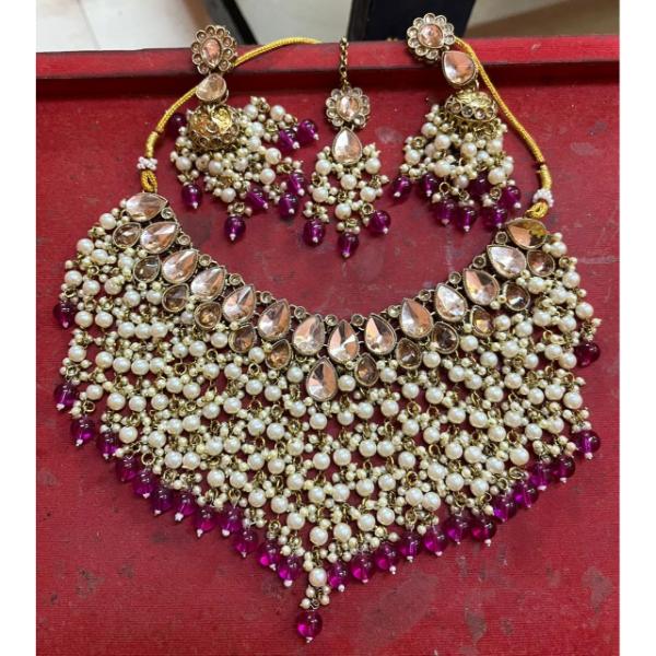 JewelMaze Crystal Stone Gold Plated Choker Necklace Set -11374865DPU
