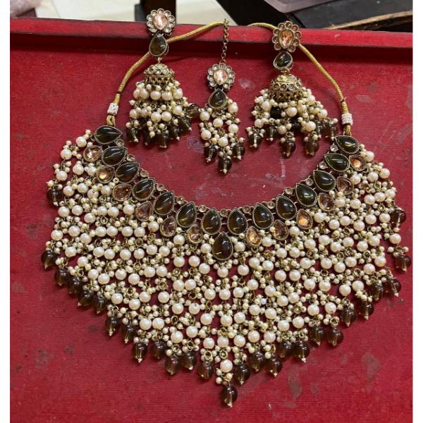 JewelMaze Crystal Stone Gold Plated Choker Necklace Set -11374868MH