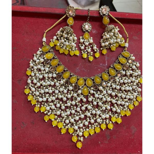 This elegant choker necklace set from JewelMaze features exquisite crystal stones expertly set on a gold-plated base, combining traditional craftsmanship with modern sophistication. The adjustable design ensures a comfortable fit while adding a radiant touch to any outfit. Perfect for special occasions, this set elevates your style with its refined shine and intricate detailing, reflecting expert artistry in every piece.