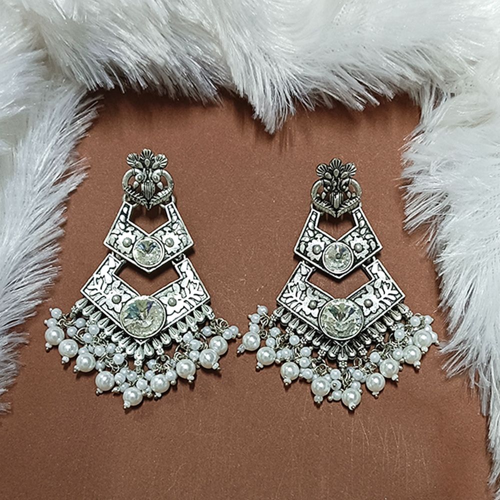 JewelMaze's Crystal Stone Gold Plated Dangler Earrings. Embellished with finely cut crystals, these danglers exude a touch of luster and sparkle for any ensemble. Crafted from gold-plated metal, these glimmering earrings are sure to elevate your style game with their sophisticated and luxurious aesthetics.