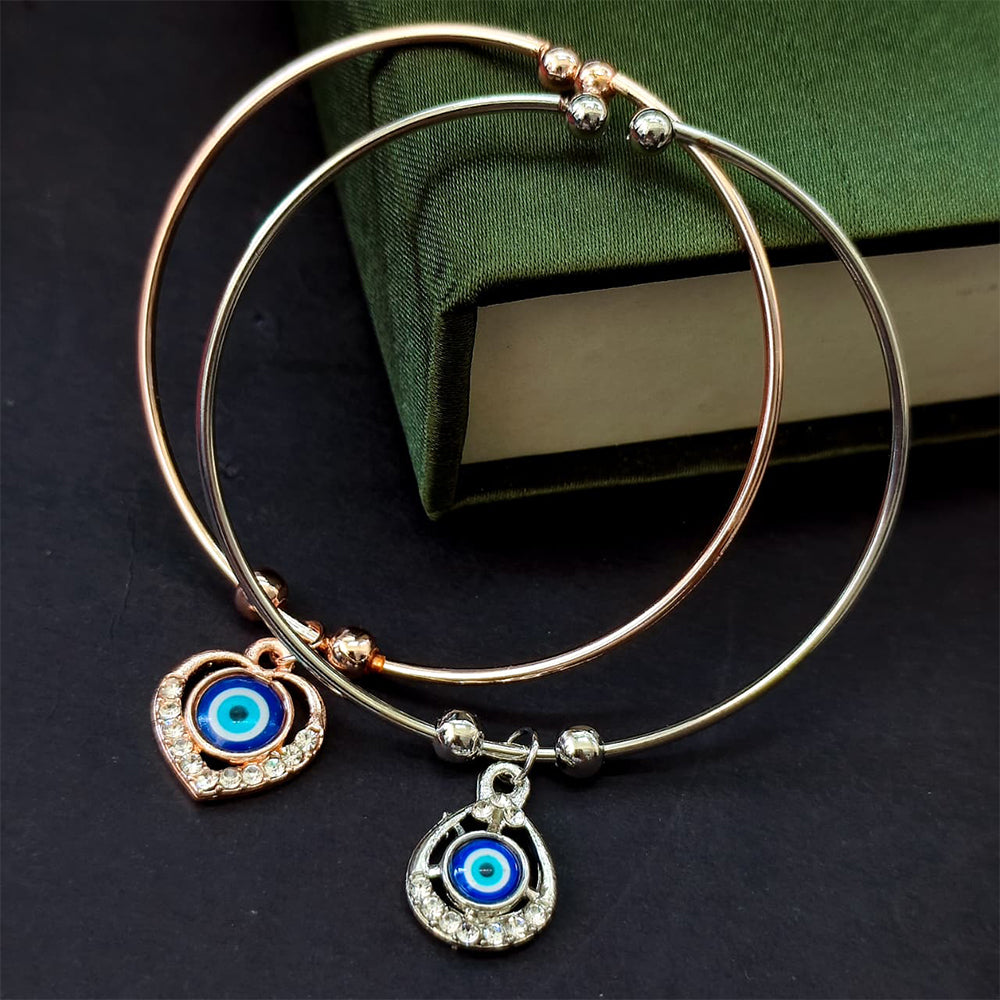 Protect yourself with timeless elegance. This evil eye heart cuff bracelet combines protective symbolism with minimalist design, perfect for everyday wear. The open bangle style offers comfortable adjustability while the delicate heart motif adds a touch of sentiment. Crafted for those who appreciate meaningful jewelry that seamlessly transitions from casual to formal occasions. An ideal accessory for layering or wearing solo.