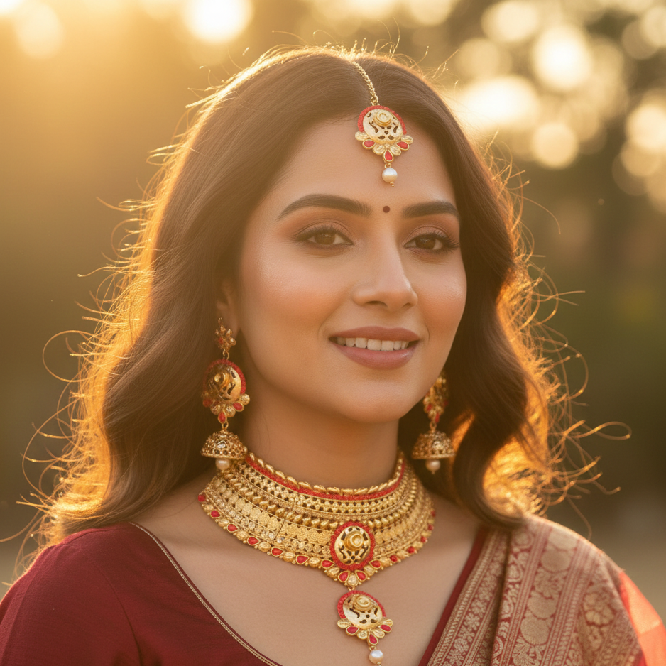 This JewelMaze Designer Austrian Stone Choker Necklace Set represents the pinnacle of bridal jewelry craftsmanship. Hand-selected Austrian stones showcase unparalleled optical clarity and prismatic brilliance, essential for wedding photography and formal occasions. The choker design sits elegantly at the collarbone, creating a refined silhouette that complements traditional and contemporary bridal wear alike.