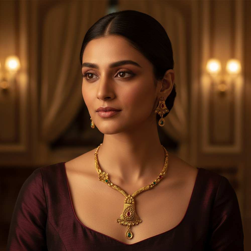 Indulge in luxury with this designer necklace set, where premium Austrian crystals meet refined gold plating in a harmonious composition. The gold finish amplifies the inherent brilliance of each crystal, creating a sophisticated interplay of warmth and sparkle that flatters diverse skin tones. Engineered for longevity, the gold plating protects the underlying metal while the Austrian crystals retain their optical excellence indefinitely.