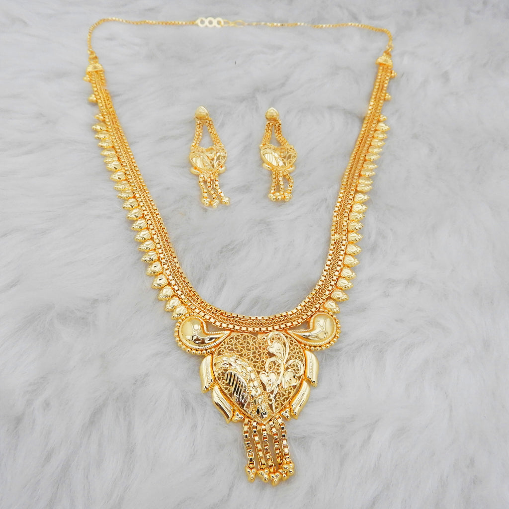 Elevate your ethnic wardrobe with this exquisite traditional necklace set from JewelMaze. Crafted to capture the timeless elegance of classic jewelry design, this piece seamlessly blends heritage aesthetics with contemporary styling. The intricate detailing and refined finish make it an ideal choice for festive occasions, celebrations, or everyday sophistication. Whether paired with traditional attire or modern ensembles, this necklace set delivers versatile appeal.