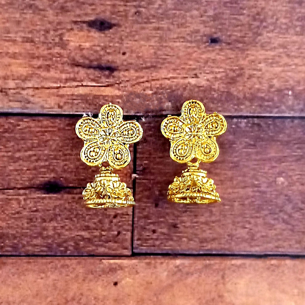 JewelMaze Gold Plated FloralSmall Jhumki Earrings