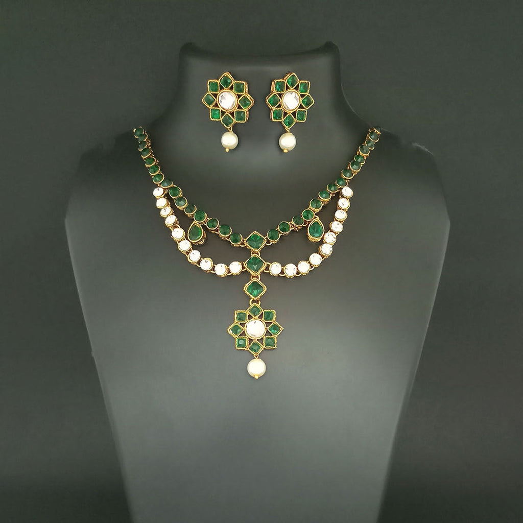 Stylish and trendy necklace set studded with Kundan stone from the house of JewelMaze, perfect for all occasions.