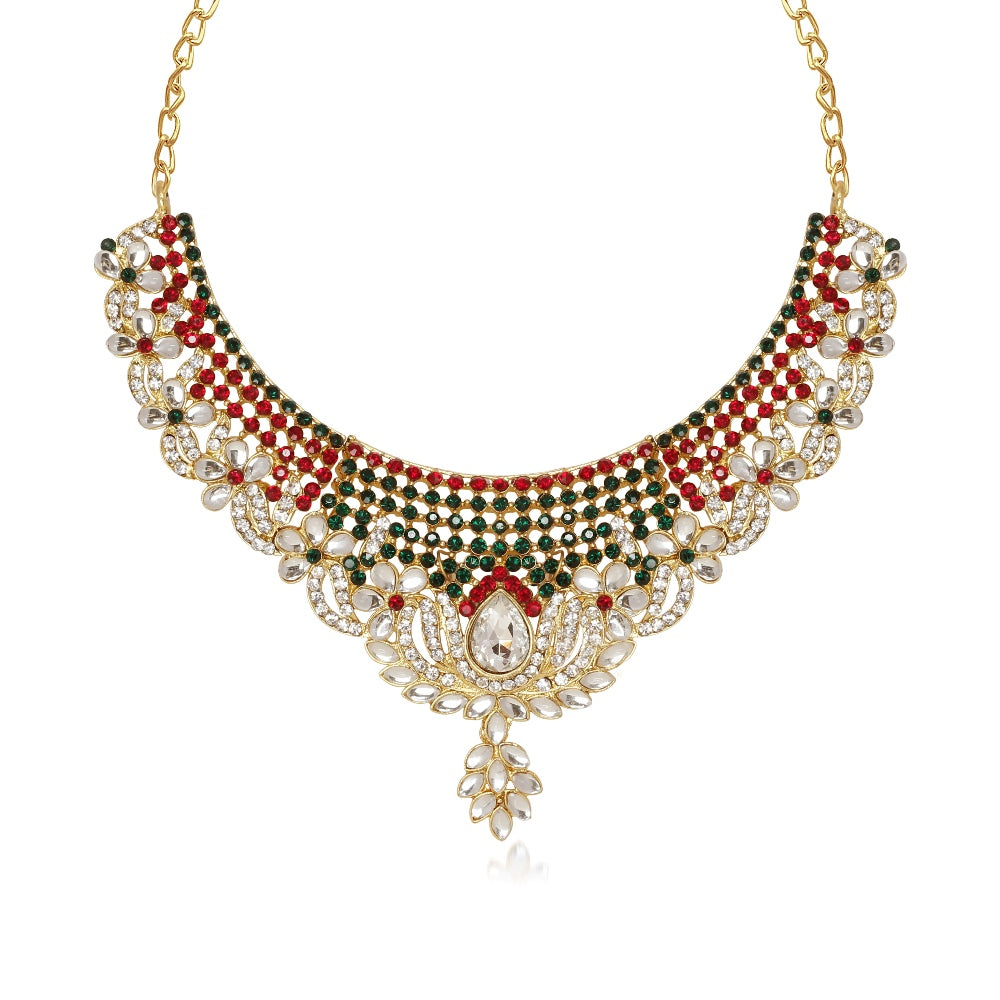 Stylish and trendy necklace set with maang tikka studded with austrian stone from the house of JewelMaze, perfect for all occasions.