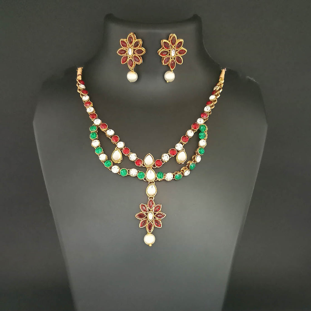 Stylish and trendy necklace set studded with Kundan stone from the house of JewelMaze, perfect for all occasions.