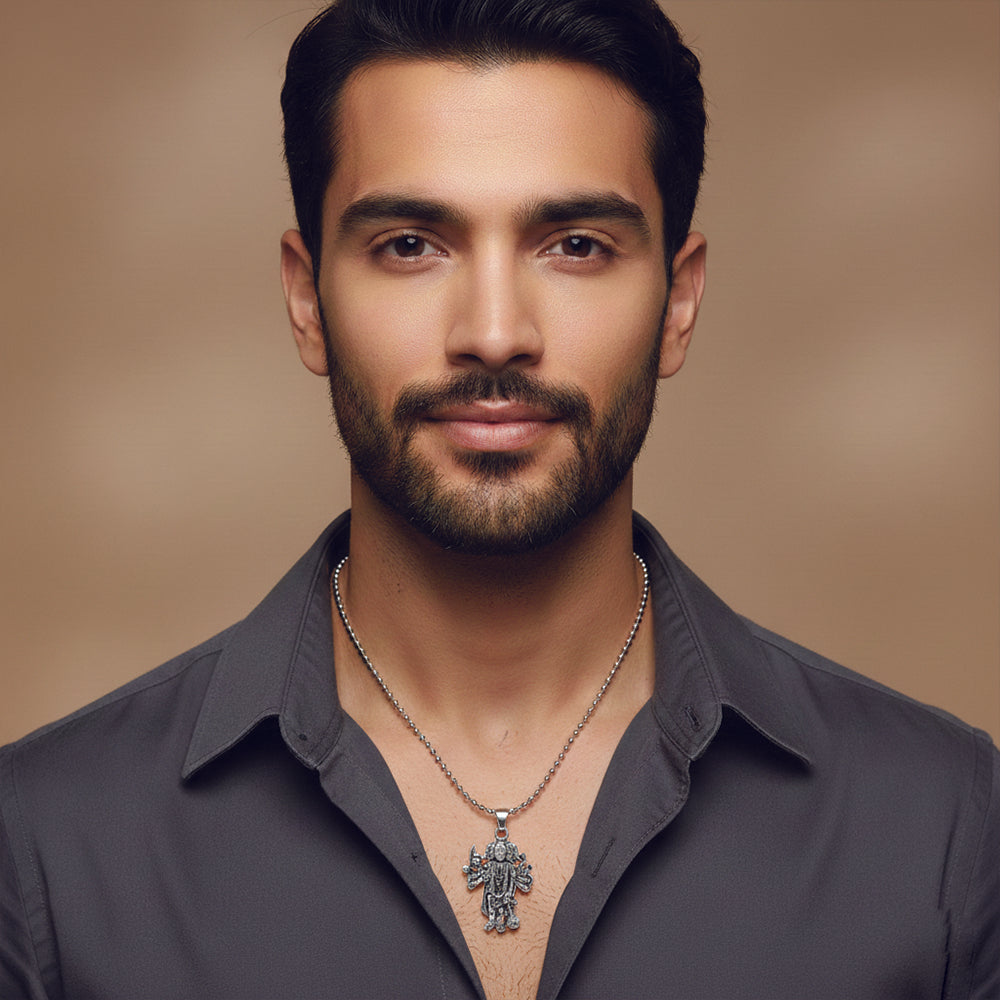 Invoke strength, courage, and divine protection with this Jewelmaze Lord Hanuman Pendant Chain. Crafted with intricate detailing, the pendant beautifully represents Bajrangbali, symbolizing power, devotion, and positivity. The silver-tone finish adds a classic and spiritual appeal, making it suitable for everyday wear as well as religious occasions.
