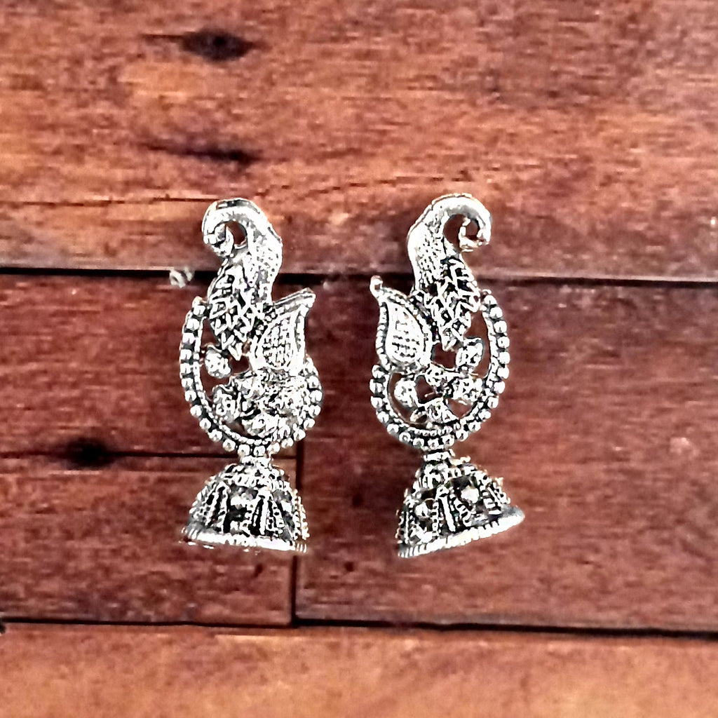 JewelMaze Silver Plated Peacock Small Jhumki Earrings