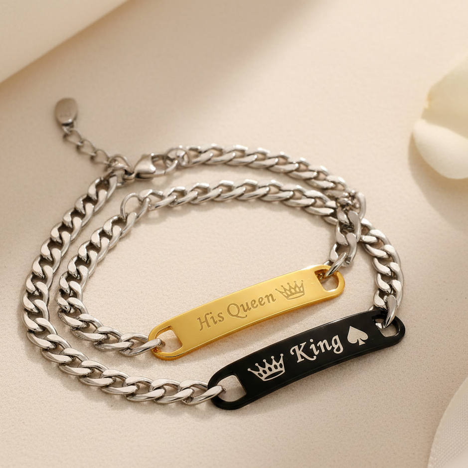 Add a touch of mystery and passion with this royal king and his queen valentine gift.This rhodium plated couple bracelet makes an unforgettable gift for everyone. Whether it is birthday, anniversary, or a romantic date, this bracelet will certainly make a thoughtful present. The bracelet is designed to be adjustable and so fits most wrist sizes. The build quality is solid and the bracelet is likely to last for a long time. The product from Urbana is allergy free.